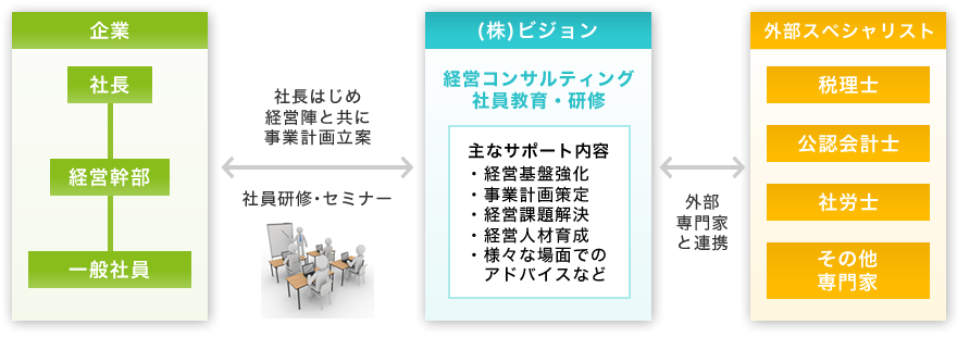 企業の組織革新や社員の行動変革をも促す本質的な経営改善のサポートをします。